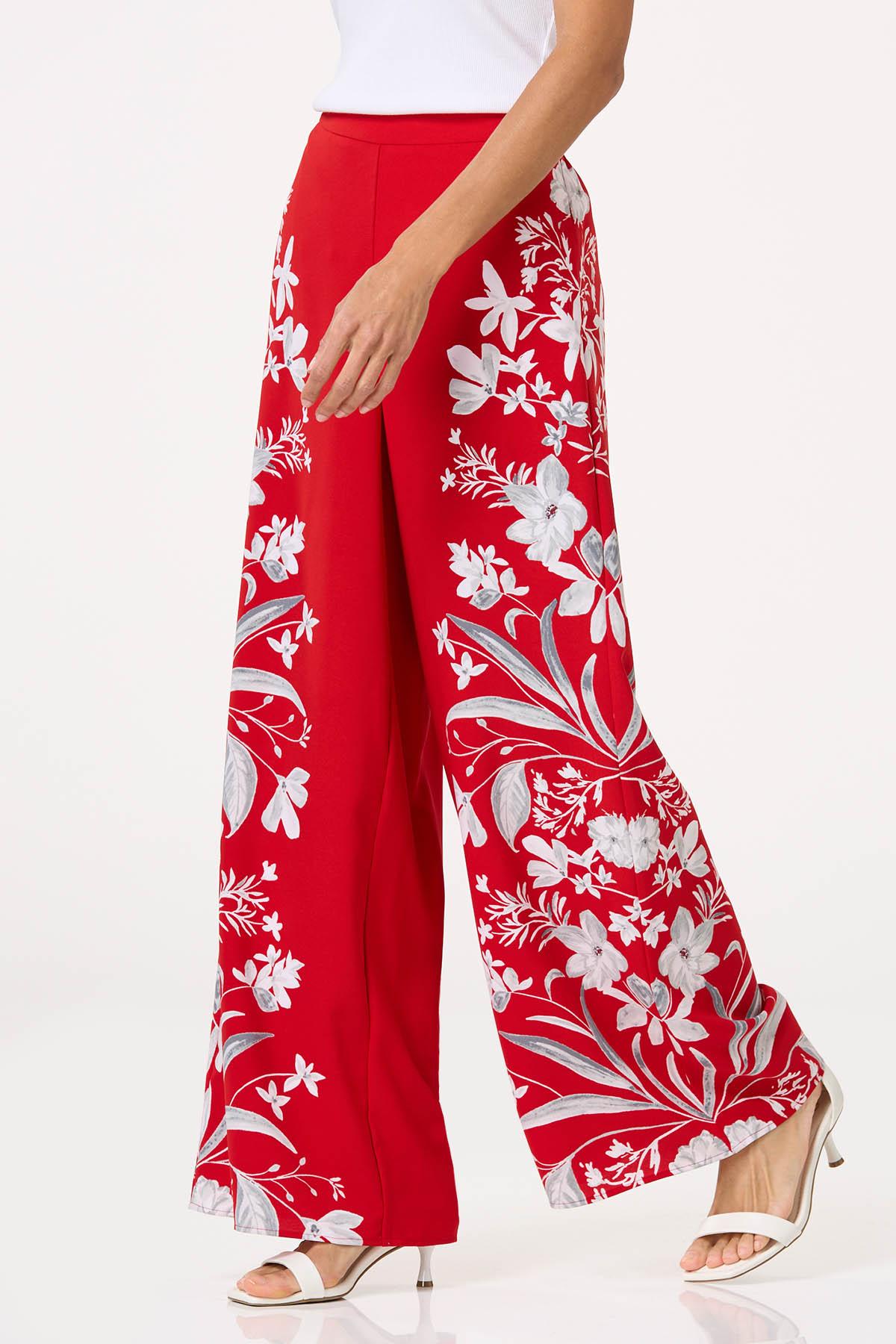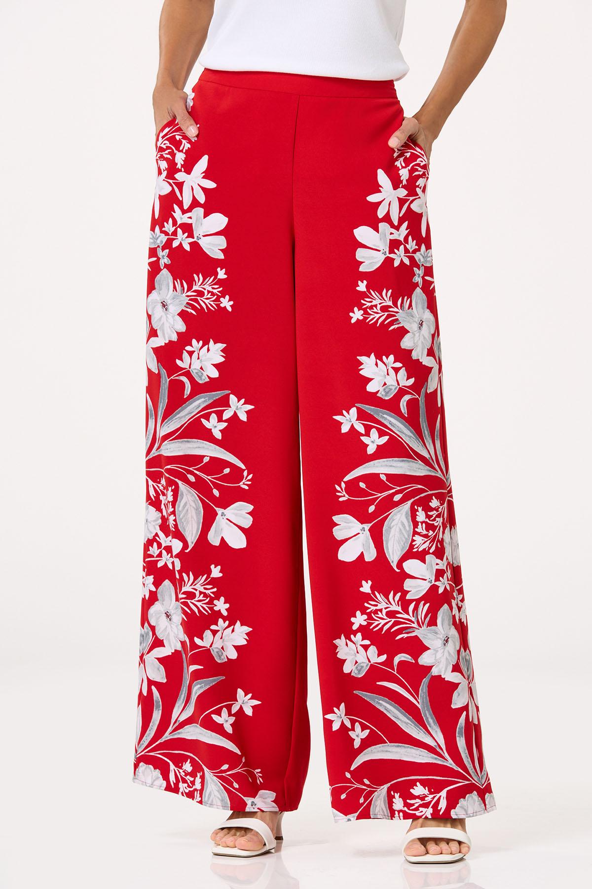 Get ready to walk in the room and make a lasting impression wearing this wide leg style. A stretchy, pull-on waist, flowy fit and vibrant-red hue are topped by contrasting blooms for a beautiful finish.
